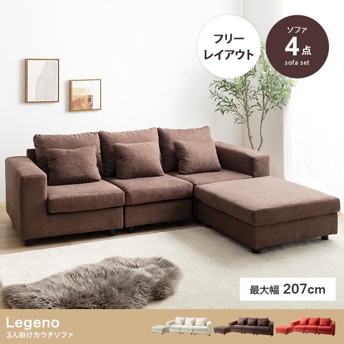 4点セット】Legeno 3人掛けカウチソファ