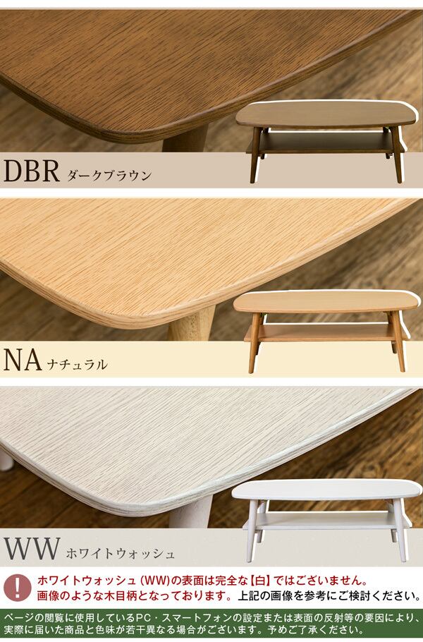 ダークブラウン(DBR)、ナチュラル(NA)、ホワイトウォッシュ(WW)の3色展開です
