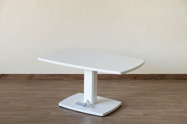 脚元のペダルを踏んで昇降するテーブルです