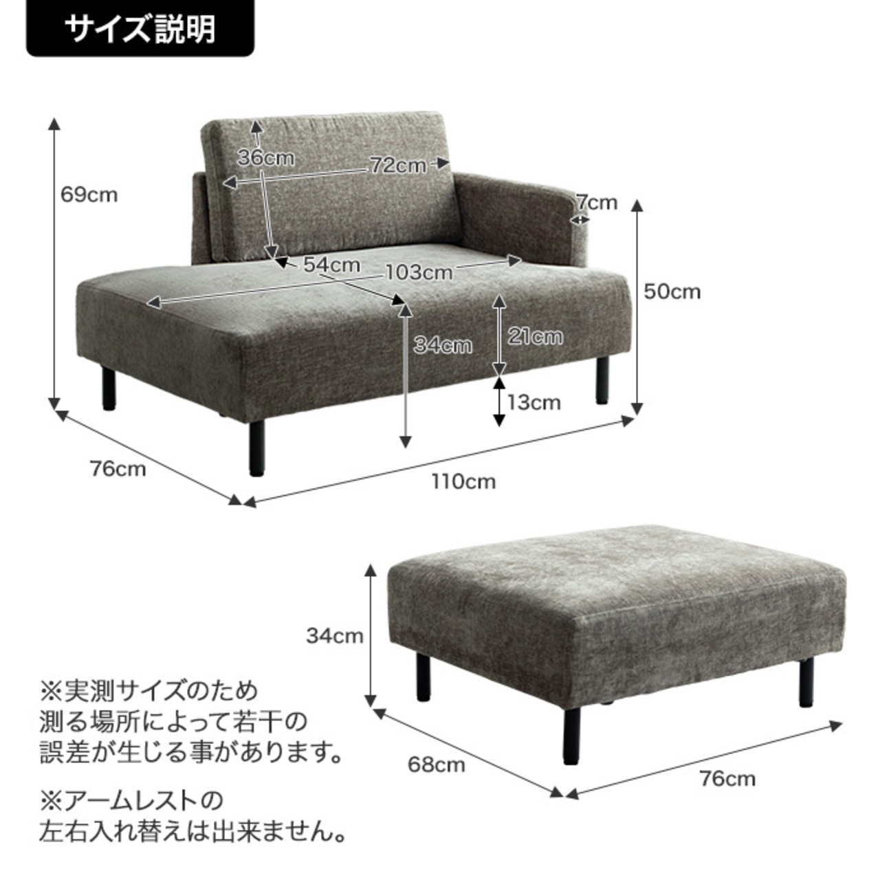 部品、生産国、脚部の形状、縫製、カバー類の色や形、サイズなどに少々誤差が発生する場合がございます。