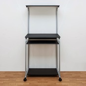 プリンターなどは上段の棚に、キーボードはスライドテーブルに、小物やソフトは下段の棚などに収納できます