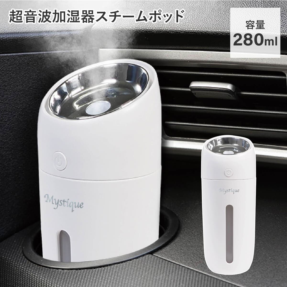 スリム形状で車のドリンクホルダーなど、省スペースにも置けるコンパクトサイズの超音波加湿器です。