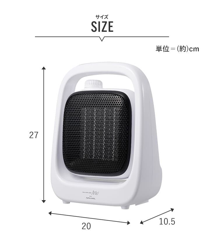 A5用紙より小さい設置面積ながらパワフルな暖房性能と、温風の向きが調節可能。