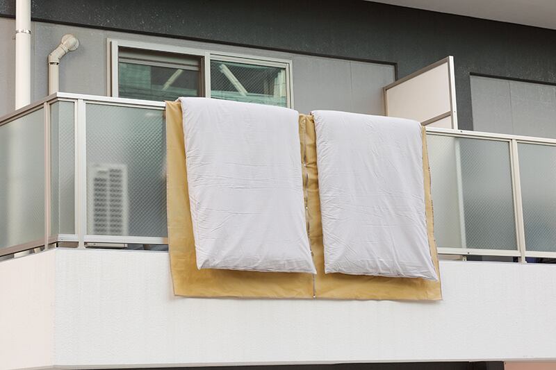 布団を干す時にベランダの手すりや外壁の汚れを気にせずに干せます。