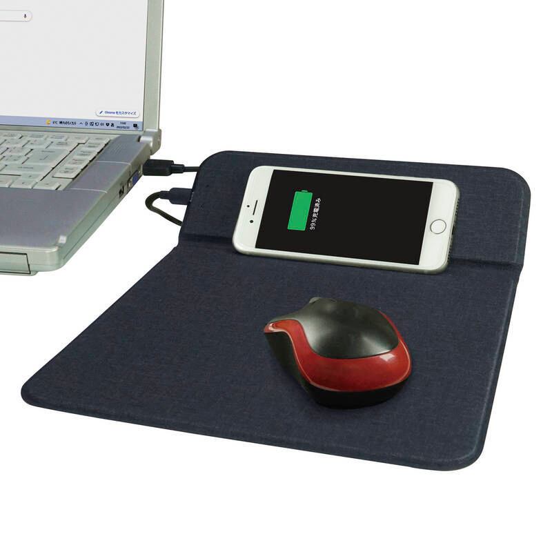・マウスパッドに10Wのワイヤレス充電機能内蔵・ワイヤレス充電部を立ち上げ、スマホ横置きで動画の視聴もできます。・マウス操作がなめらかな質感の高いレザー調のPU製。・充電部をたたむとコンパクトに、バッグに入れて携帯もできます。・充電中は青色LEDランプ点灯 ※ワイヤレス充電機能は、スマートフォンがワイヤレス充電に対応している必要があります。